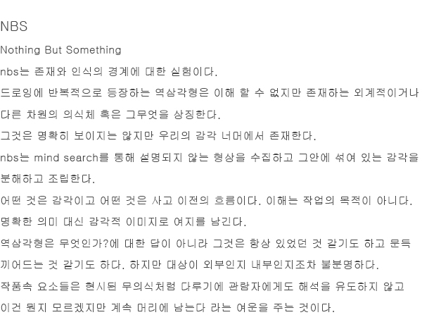 ¡°nbs (nothing but something)¡±´Â Á¸Àç¿Í ÀνÄÀÇ °æ°è¿¡ ´ëÇÑ ½ÇÇèÀÌ´Ù.